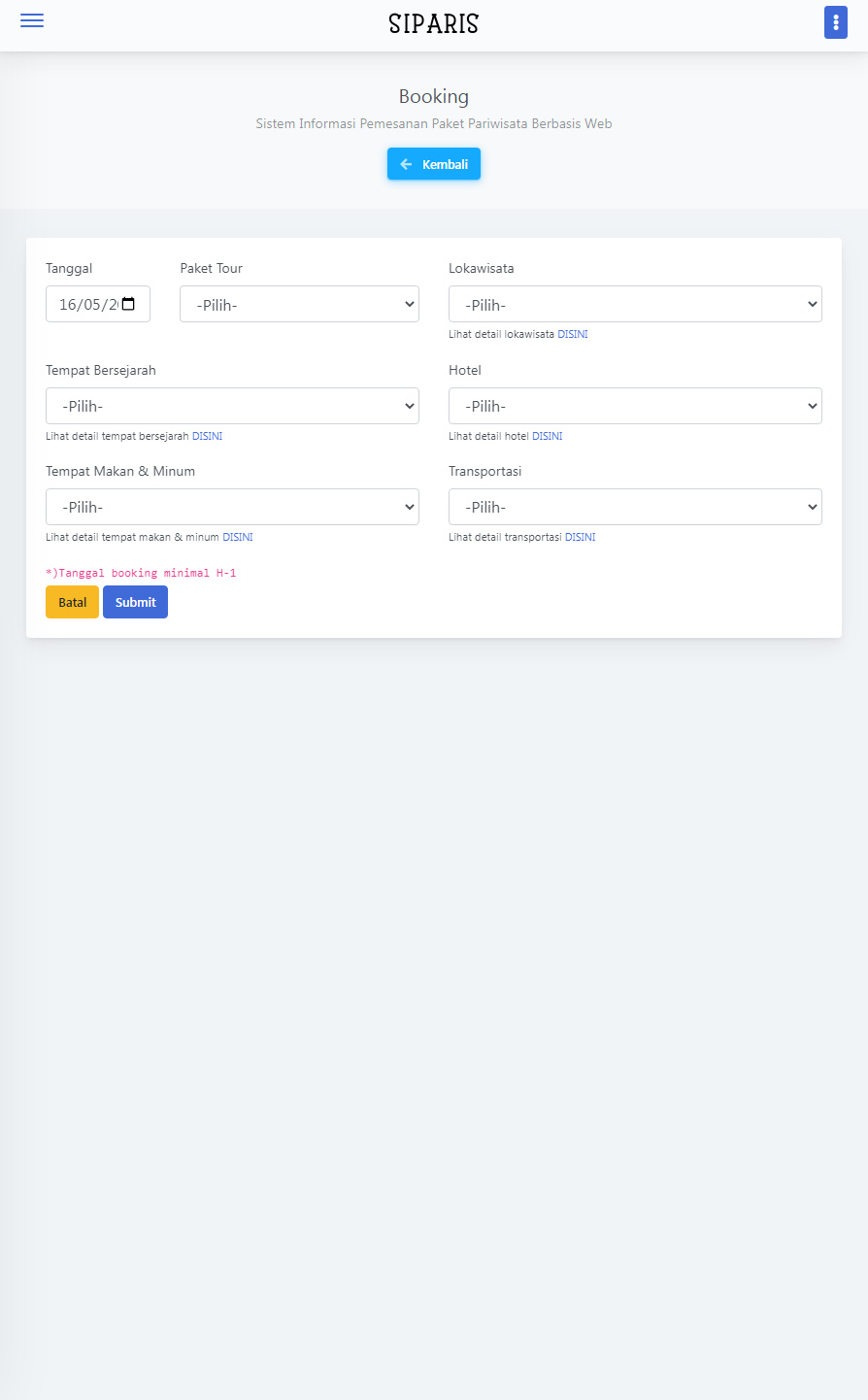 - Paket Tour : Ini adalah field ke-2 yang wajib di isi. Silahkan pilih paket yang Anda inginkan.